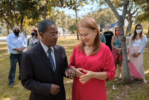 Martinho Antônio dos Santos e Maria Urcino juntos tem uma história de vida que serve de exemplo para todos nós. Senhor Martinho é natural da cidade de Campos Belos no estado de Goiás, onde passou parte da infância e seguiu para Arráias no Estado do Tocantins, acolhido pela família Maurílio Santana, onde ficou até a adolescência. Mudaram-se para Brasília e seu primeiro trabalho foi como funcionário do Banco do Estado de Goiás-BEG, em 1961, aos 19 anos. Dona Maria Urcino é natural de Ponte Alta de Bom Jesus no estado do Tocantins. O casal se conheceu na cidade de Dianópolis, Tocantins. Martinho havia sido transferido de agência pelo BEG como procurador para aquela cidade e Maria foi para estudar. O destino os colocou na mesma cidade por meio de uma amizade que Martinho tinha com Edilson Soares, Gerente da Agência e que o convidou para lá. Se conheceram, se apaixonaram e logo se casaram. Desta união que completa 52 anos tiveram três filhos: Marcos, hoje contador e pai de Maria Tereza, Marcos Segundo e Maila Mariah, Marcia, professora comercial, mãe de Luma e Marta, funcionária pública, mãe de Alice e Larissa.